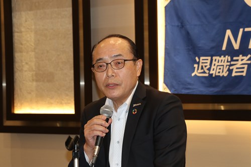 はじめに、豊田NTT労組中央副執行委員長は、「①参議院選挙で石橋みちひろは3期目の当選を果たし、予算委員会で筆頭理事として頑張っているが、3年前の参院選より獲得票は3万票減らし、厳しい結果を組織として受け止めている。投票動向調査の速報値(現役)は、投票率は81.8%で3年前より高くなっているが、若い世代ほど投票率が悪く、立憲民主党への支持は低い。また、組合役員からの働きかけについては3割強がなかったと答えている。政治啓発活動、役員育成が急務であり、退職者の会で実施した調査結果と合わせ、来年の地方選、3年後の参院選に活かしていきたい。地方選では、自治体議員団60名が立候補を予定している。②会員拡大について勧誘までは現役の責任で全ての対象者へアプローチしていく。また、企業本部、グループ連絡会へ連携を強化するよう指導していく。③来年の春闘は円安・物価高の状況からしてもしっかり要求していく。最後に今後も現役役員へのご指導をお願いする。」と挨拶した。
