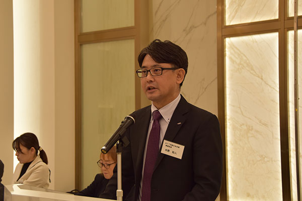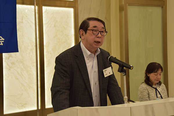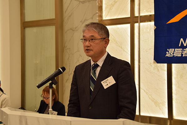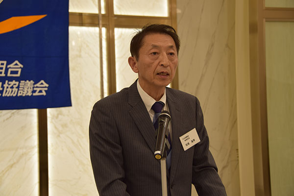 続いて、NTT労組水野事務局長があいさつし、「①政治課題について、第27回参議院議員選挙における支援と協力への御礼、与党が自維政権となり、安保3文書の前倒し、日中の緊張感など危うい保守政権となっている高市政権の現状、今後の国政選挙に対する組織内候補予定者への支援と協力の要請。②2026春闘について、厳しい交渉が想定されるが、確固たる要求を確立し春闘勝利に向けて取り組む。③会員拡大の取り組みについては、加入者数が年々減少し、10万人を下回る状況。各グループ連絡会との連携を強化し、退職予定組合員への丁寧なアプローチを徹底することで、加入促進を図っていきたい。」と挨拶した。
